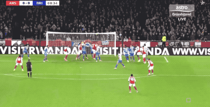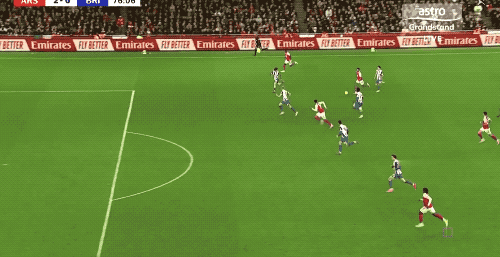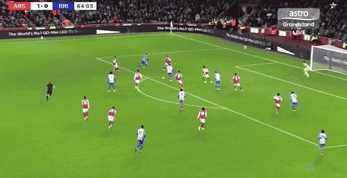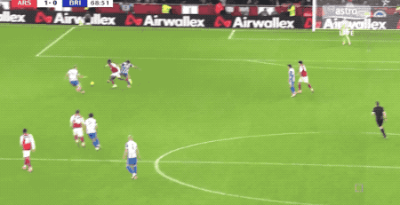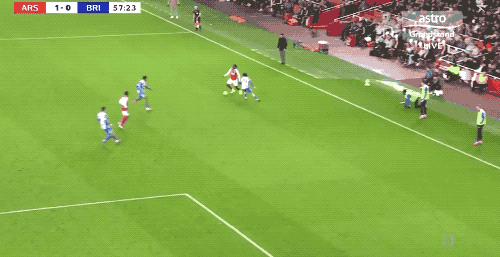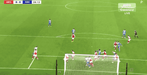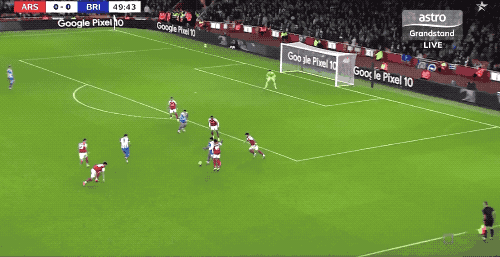 第10分鐘,阿森納的角球戰(zhàn)術(shù)未果,布萊頓隨即打出快速反擊,齊馬斯的單刀射門,同樣被凱帕化解。