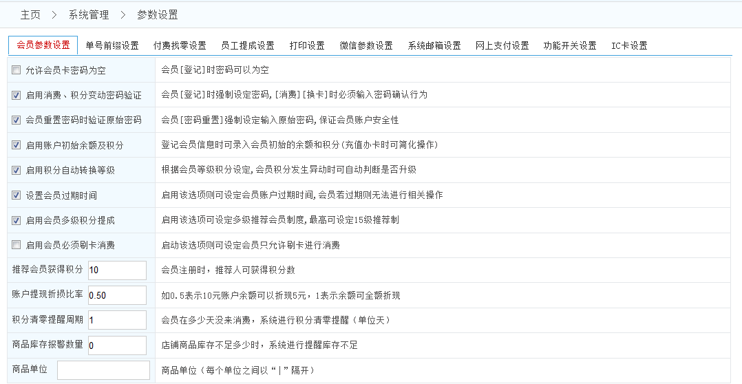 五通一卡通云會員管理系統(tǒng)系統(tǒng)參數(shù)設置